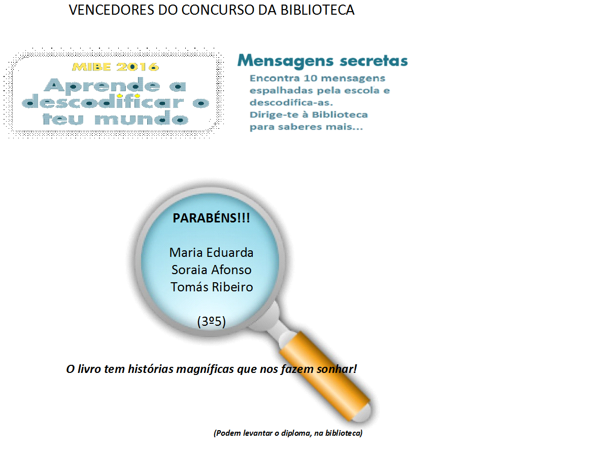 No Mês Internacional das Bibliotecas Escolares (outubro) os alunos da Veiga andaram à procura de mensagens secretas alusivas à data, espalhadas pela escola. Claro que houve uma equipa vencedora e lembranças para todos!
